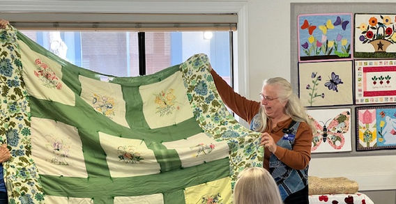 At our February Guild meeting, the beautiful quilt created by the Bits and Pieces Sewing Circle was donated to Caring Veterans of America Inc. The quilt will be raffled as a fundraiser to support the organization’s important work serving local veterans.